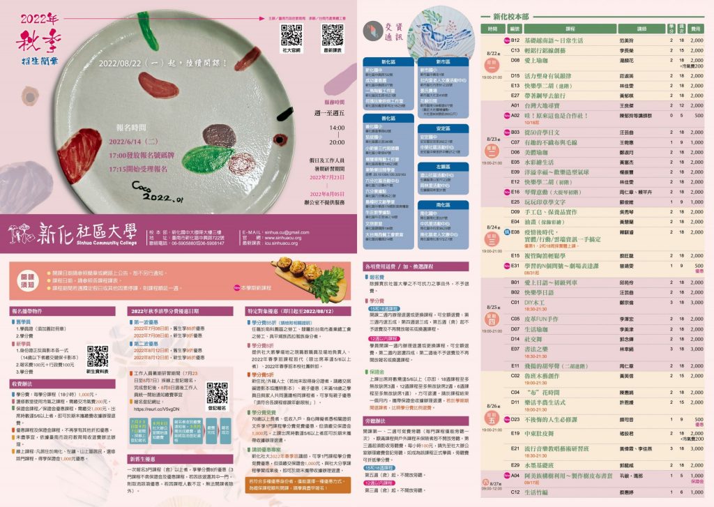 有任何問題歡迎來電社大辦公室06-5905880、06-5908147詢問
